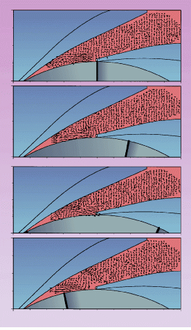 Analyzed was the flow in a blood chamber of a new heart assist system. A movie of three images shows the diastole (inflow), the flow between diastole and systole and systole (outflow).