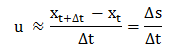 If dt is sufficiently short, the displacement of the particle, ds, is small enough so that the direction and magnitude of the particle velocity during dt can be assumed constant, i.e. the acceleration is negligible. Then the local fluid velocity may be estimated as: